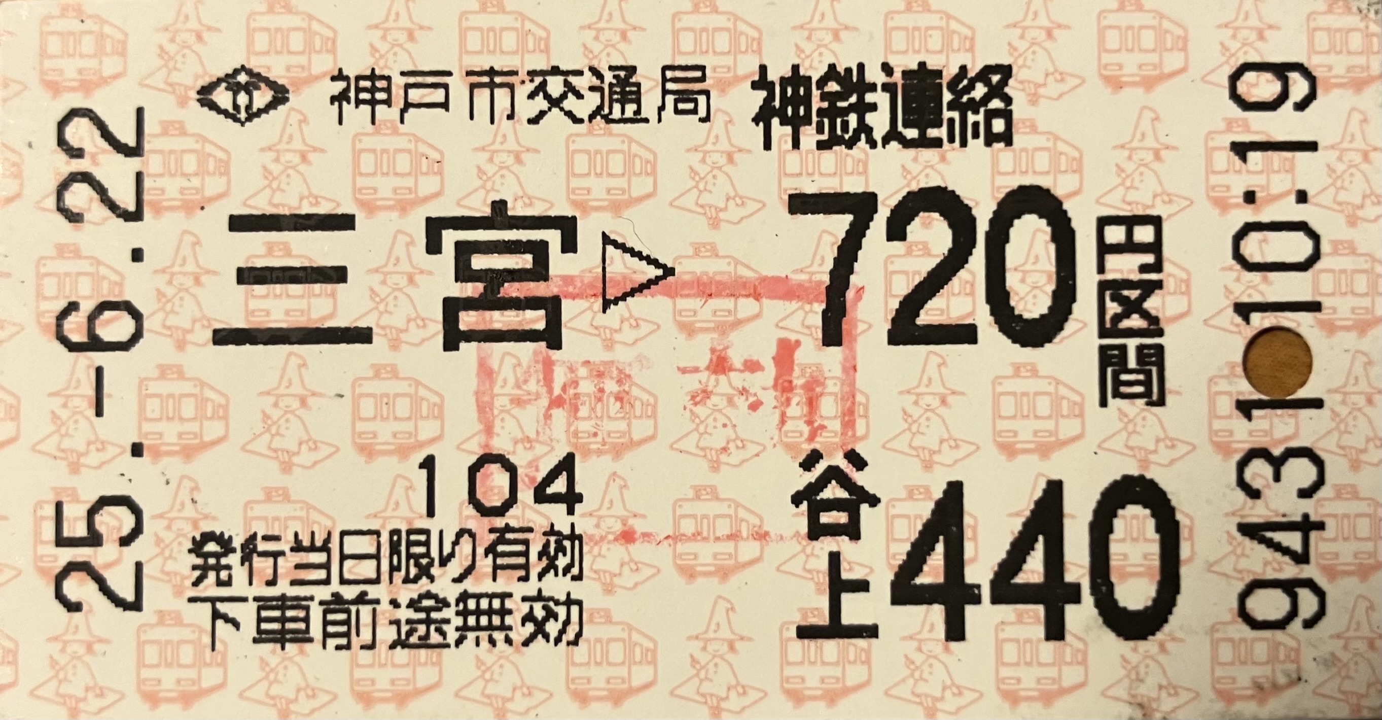 令和7年6月22日 神戸市営地下鉄西神山手線・神戸市営地下鉄北神線・神戸電鉄有馬線経由乗車券 三宮->有馬温泉